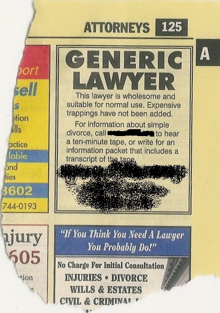 Indeed, the rules did ban just anything that might make an advertisement remotely interesting to look at, thereby getting the viewer’s attention (you know, the whole point of advertising). Essentially, the ads would be limited to the lawyer saying something like “My name is John Q. Lawyer. This is my law firm. It is located here. I practice such and such areas of law. The end.”