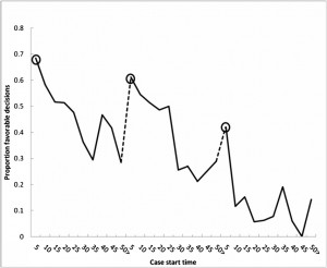 *Image taken from PNAS report, showing the proportion of favorable decisions over time.