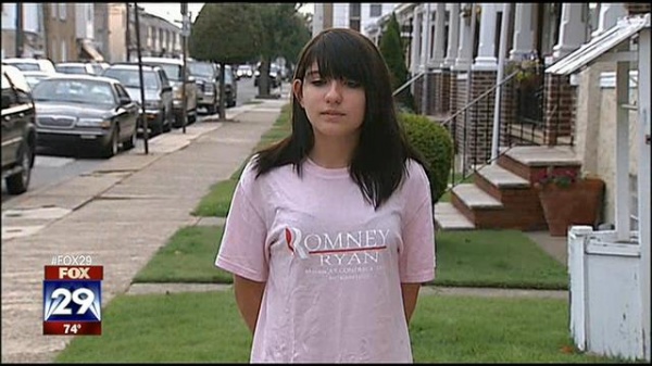 In Pennsylvania, a geometry teacher named Lynette Gaymon mocked and harassed sixteen year old Samatha Pawlucy for wearing a T-Shirt promoting Romney-Ryan. Gaymon claimed that Charles Carroll High (the school they attended) was a “Democratic school” and that wearing the T-shirt was like wearing a KKK robe. The Port Richmond District has issued an apology and Gaymon has apologized for her statements, although the damage has already been done.