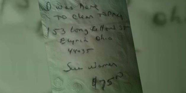 downstairs, she found a napkin with Warren’s phone number, address and a bill for seventy-five dollars. Sherry told Mallory no cleaning lady had been hired, so Mallory called the police.